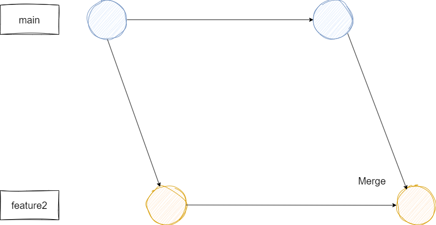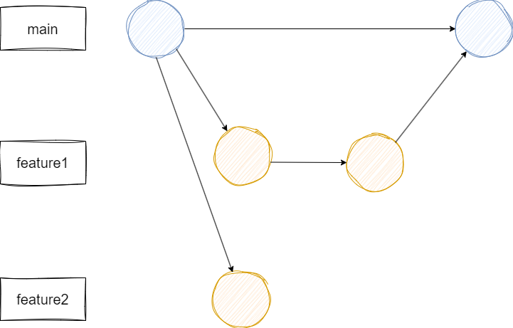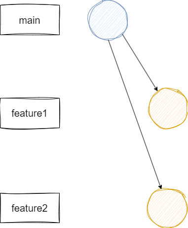 - 신규 기능 개발을 할 때, main 브랜치에서 feature 브랜치를 따서 개발 진행