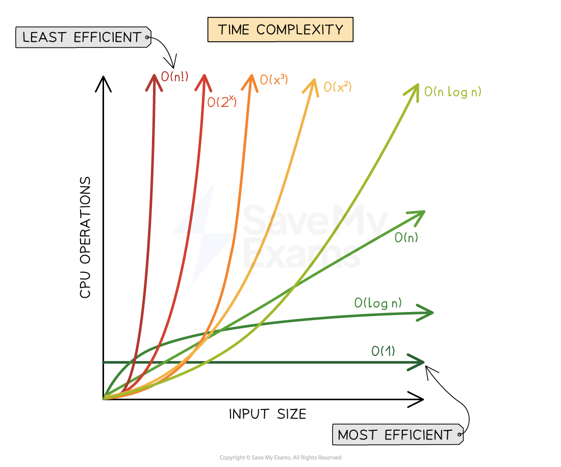 O(1) < O(log(n)) < O(n) < O(nlog(n)) < O(n2) < O(an) < O(n!)